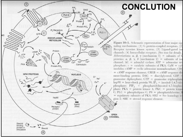 Jika suatu agonis berikatan dengan reseptor, akan terjadi perubahan formasi resptor. co : dari sabit jadi kotak. bisa lama dariion karena harus mengubah bentuknya terlebih dahulu. lalu harus berpasangan -> fosfolidasi (adanya energi tinggi yang dapat menrik protein lain)